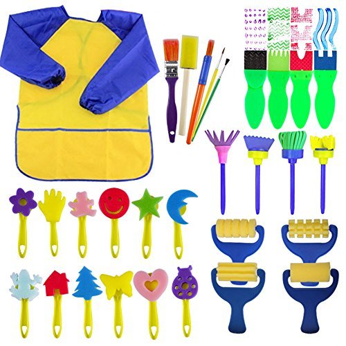 manica lunga grembiule impermeabile Kit pittura per bambini,31 pezzi Early Learning Kids Paint set pennello spugne da pittura per bambini con motivo floreale di spugna pennello pennello Cancelleria e prodotti per ufficio